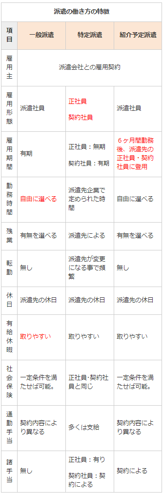 派遣での働き方も次の3種類があり、雇用条件も異なります。